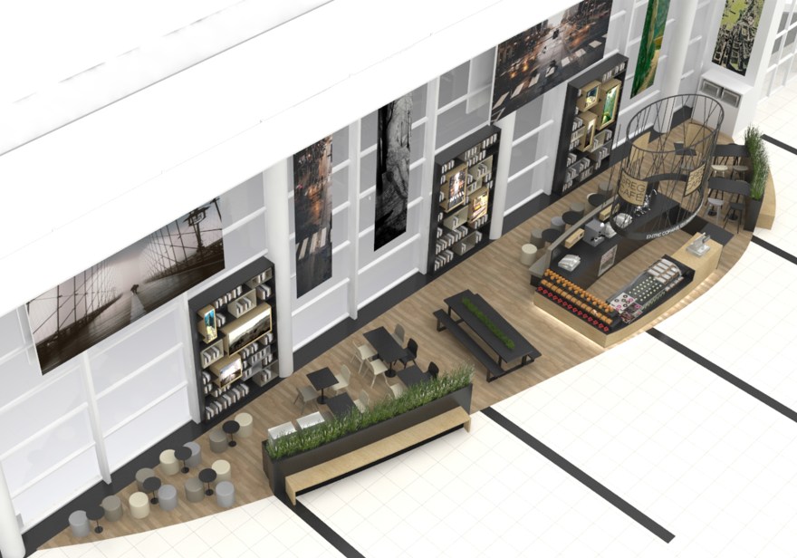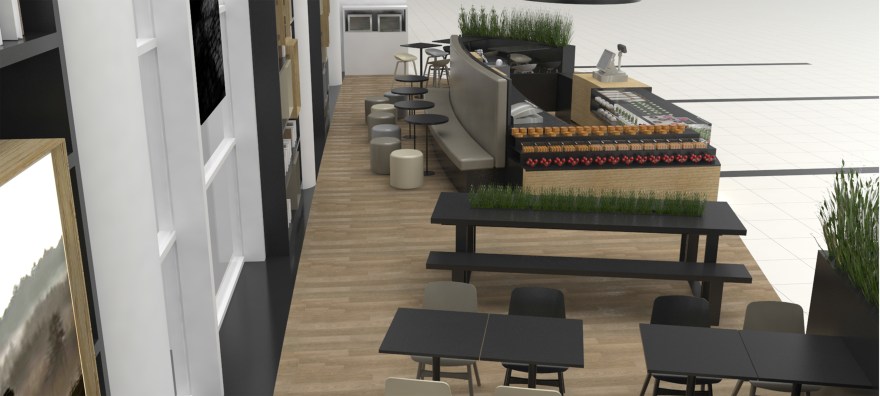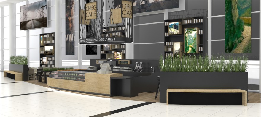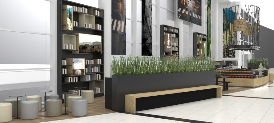 On this project, the idea was to combine a café with a library in order to offer customers a space to relax and taste some specialties of the shop after an exhausting and long shopping time.