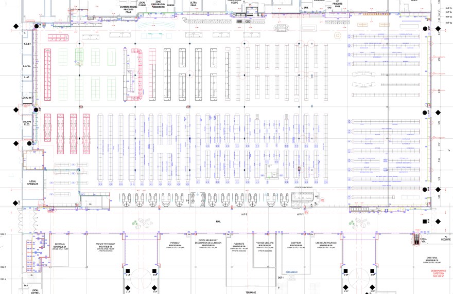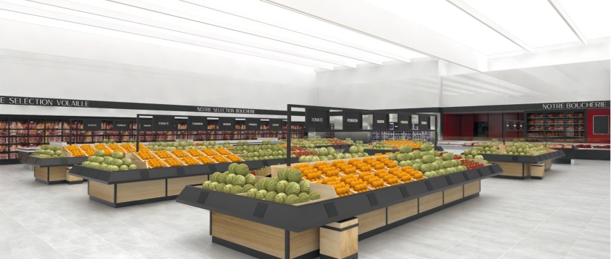 Following the commercial center idea, this hypermarket concept is to mainly focus on the products while minimalizing volumes. The interior remains classy and fresh with some punctual colors in order to give each product section an authentic identity.