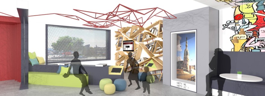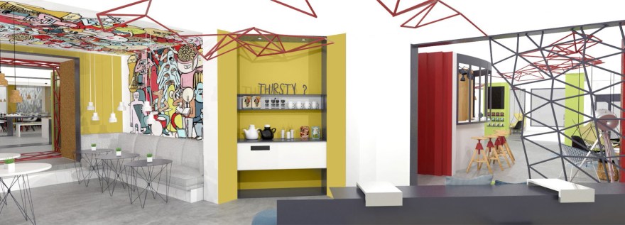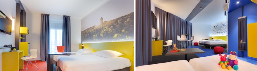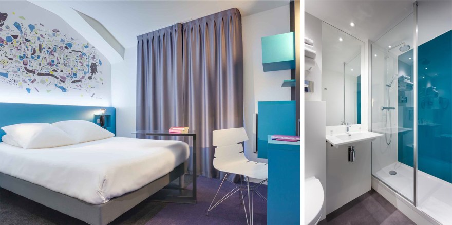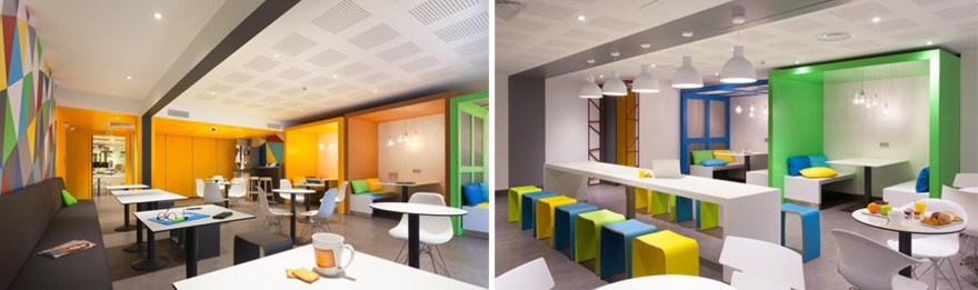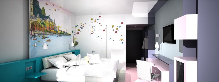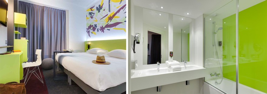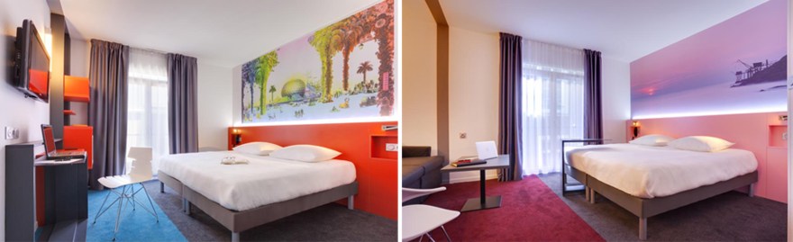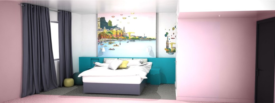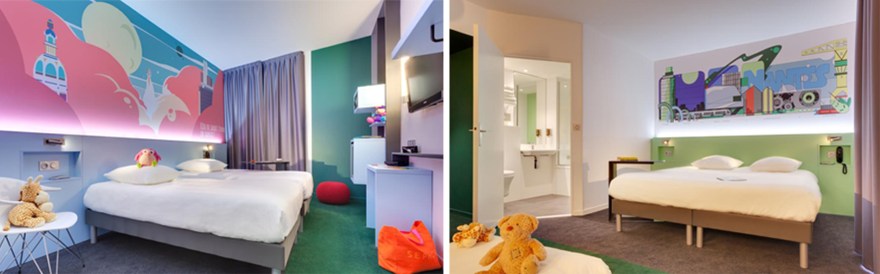 The project here was to change a very classic hotel, to an Ibis Styles Hotel with a strong and colourful concept. This hotel is located in Nantes, a French city mainly known for its culture and arts. The idea was to work with several local artists to give them space to express their art and give the customer the opportunity to discover the city through arts.